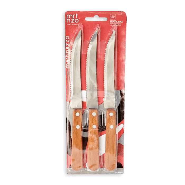 Blister x3 cuchillo para asado con mango de madera Línea Universal