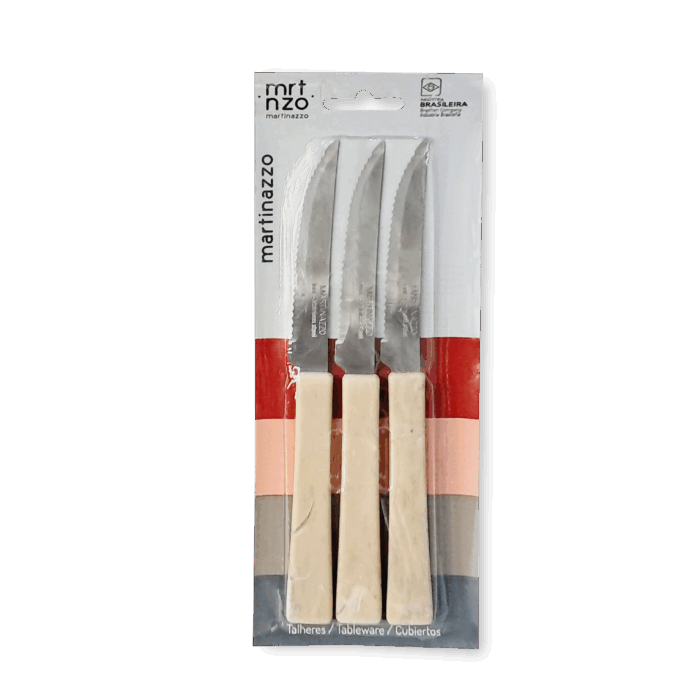 Blister x3 cuchillo Para asado marmolado Línea Esencia BEIGE