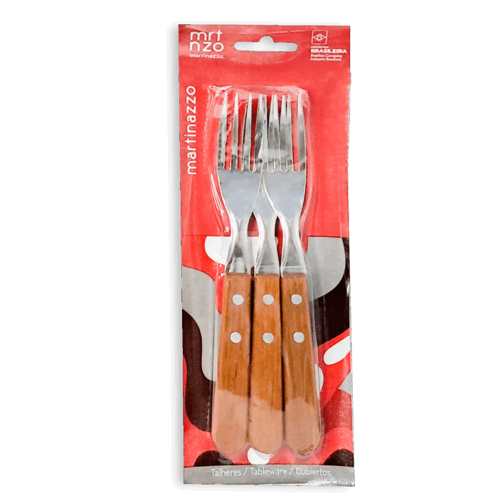 Blister x3 Tenedor de mesa con mango de madera Línea Universal