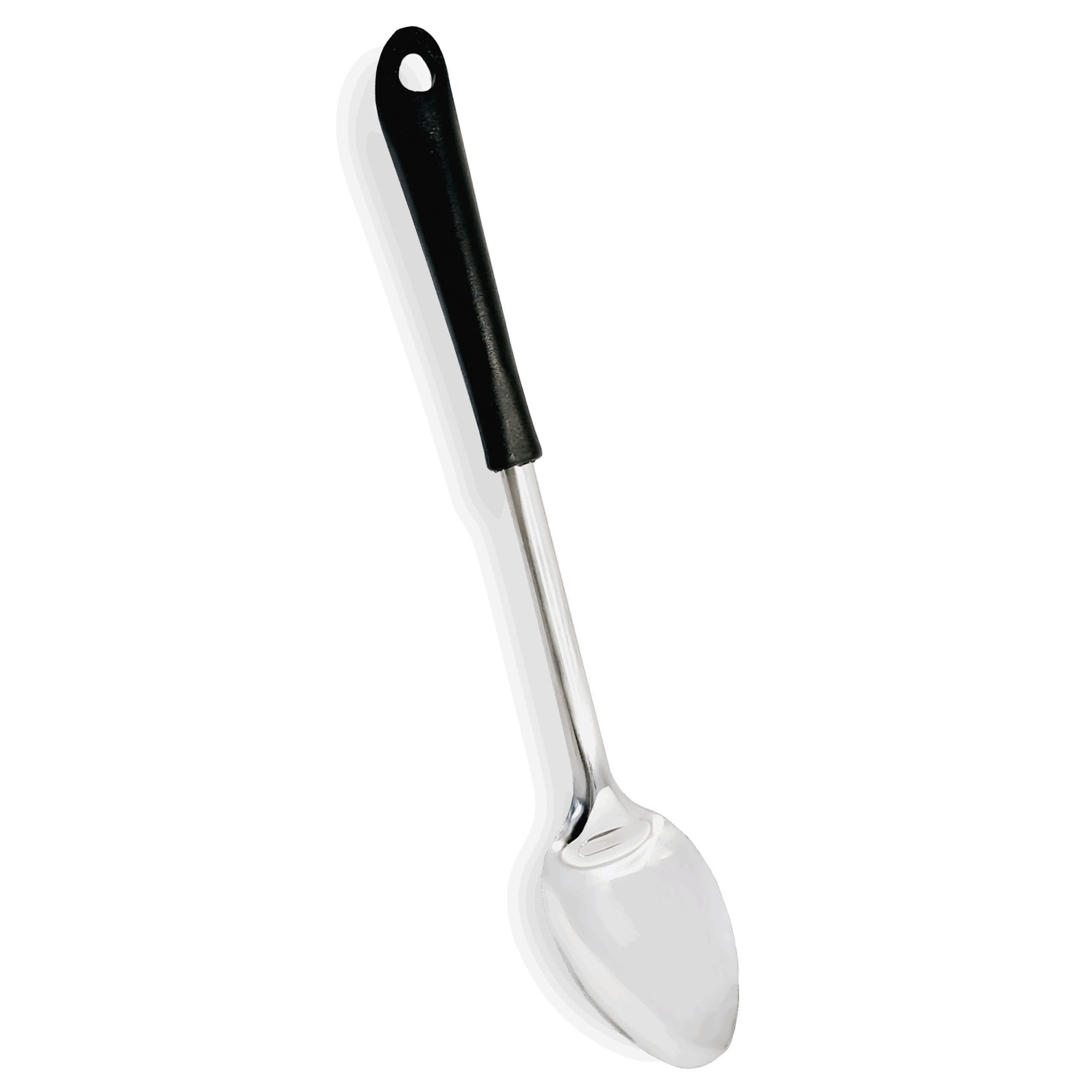 Cuchara para Arroz 100% inoxidable con mango negro.