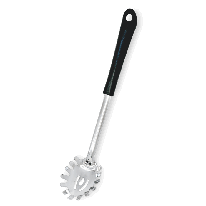 Cuchara para Fideos 100% inoxidable con mango negro.