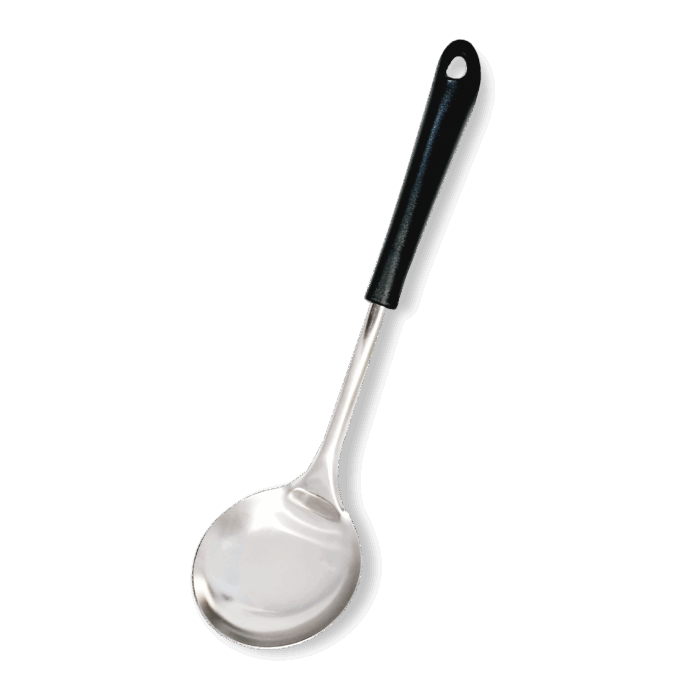 Cucharón 100% inoxidable con mango negro.